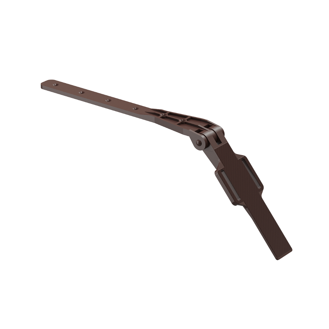 Крепление регулируемое серии «Premium», окрашенное в цвет «Шоколад», используется для монтажа кронштейнов из пластика на конструкцию крыши с отсутствием лобовой доски.